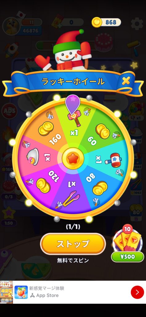 広告視聴さえしてしまえば無限にルーレットを回すことができるので実質ただでアイテムが手に入る仕様です。