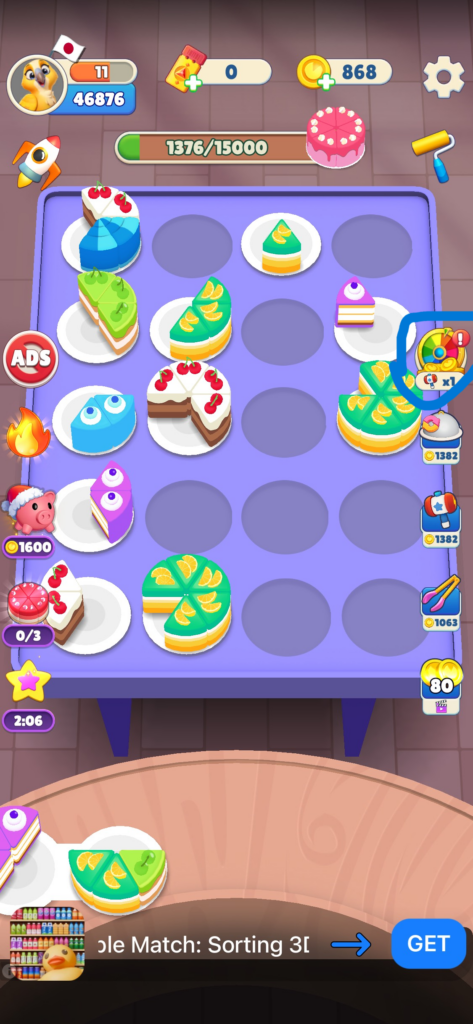 Cake Sort広告視聴が比較的多くゲーム攻略には欠かせないものになっています。