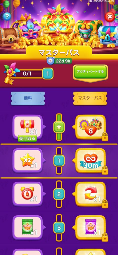 これらのアイテムはミッションやパス、コイン使用、広告視聴で手に入れる事ができます。