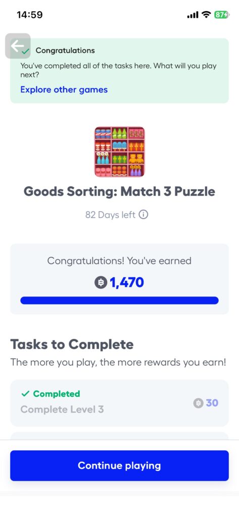 この手の海外ゲームは複数あるのですが、中でもこのGoods Sortingは広告が比較的少ないといった所が好印象でした。